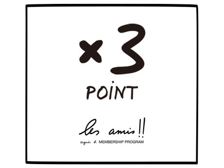 一部店舗及びPOP-UP SHOPでは、期間中 アニエスベーメンバーシップ “Les amis!!”のポイントを通常の3倍プレゼントいたします。